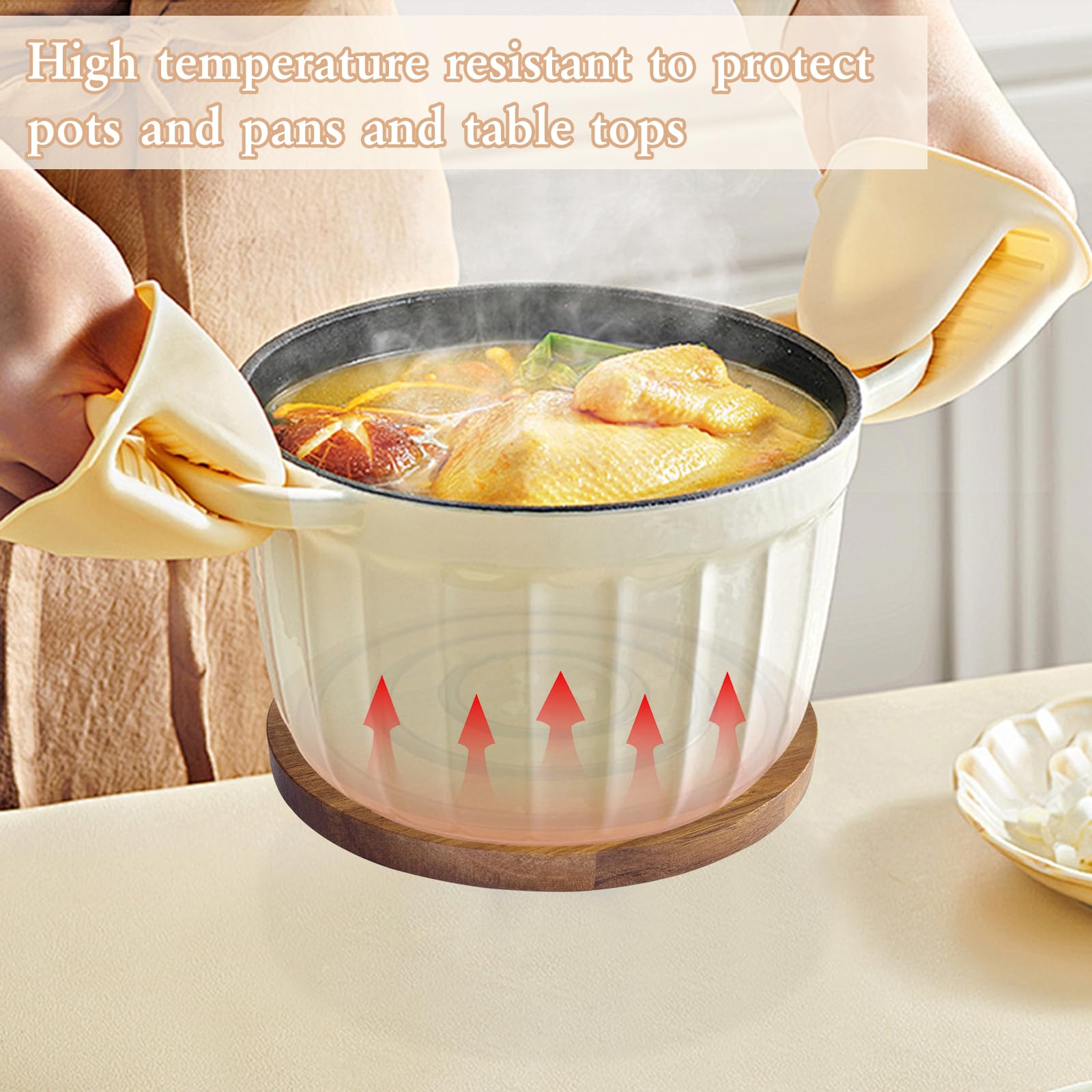 High Quality Acacia Wood:Made of luxurious acacia wood, which is heat-resistant and stable, perfect for kitchen pot holders.